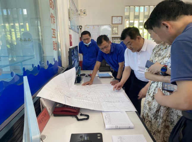 2022年8月10日上午,荆门市政协党组副书记、副主席伍应彪一行到凯发·K8水务集团三水厂,调研中压区供水设施建设可行性方案。