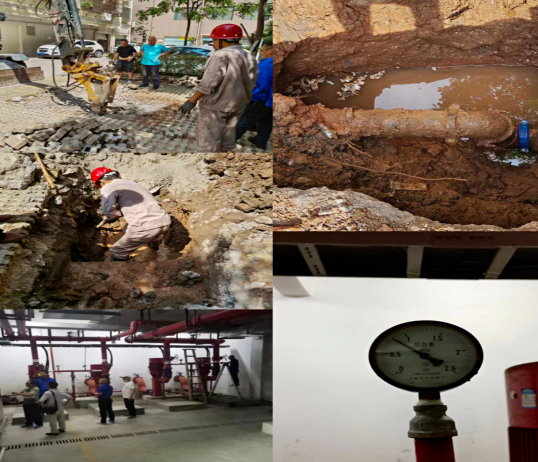可正当进行试压时,小区消防控制中心却传来一个出人预料的“噩耗”,消防管网压力居然为0,隐患仍未消除!看着满身疲惫的“战友们”,王经理鼓劲到“大家先休息,我们再来想办法。”集团相关部门获悉情况后,由生产安全部携手营抄中心和润泽公司等多家单位,主动参与会战,同时致电消防部门给与技术指导。