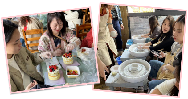 集团工会贴心地为大家准备了插花、烘焙和陶艺三类活动,女同胞们根据兴趣爱好选择参与,感受沉浸式体验。