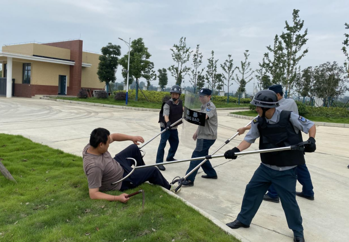相关负责人在现场宣贯了反恐防暴演练方案,讲解了演练要点。安保队长详述安全注意事项,并向大家演示了防暴钢叉等反恐器械的正确用法。