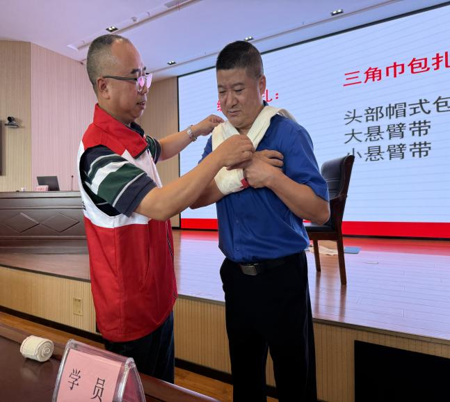 本次培训内容丰富实用,既涵盖国际红十字运动基本知识、救护新概论等理论内容,又聚焦现代救护技术召开实操训练。培训中,讲师系统讲解心肺复苏与AED操作技能,顺利获得现场演示、手把手指导,帮助参训人员熟练掌握这一关键生命救护技术;在创伤救护环节,不仅细致讲解止血、包扎、骨折固定等基础方法,还针对气道异物梗阻、烧烫伤、踝关节扭伤等常见意外伤害的现场处理展开深入教学。