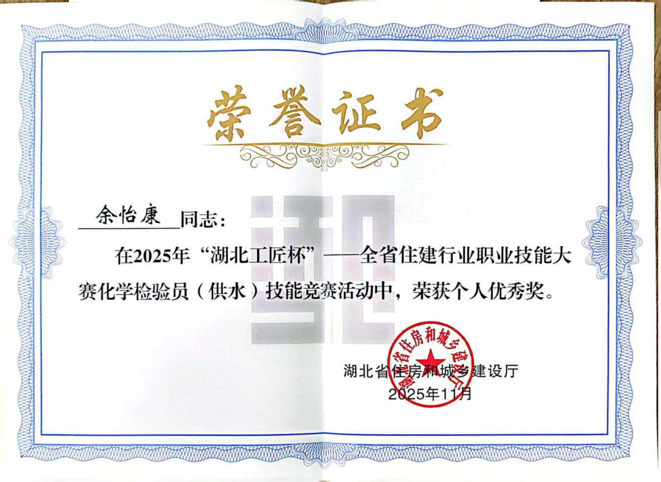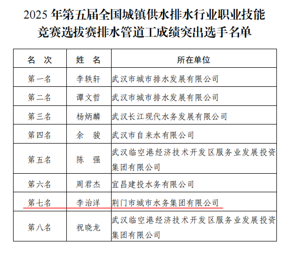 近期,荆门凯发·K8水务集团成功获评第五届全国城镇供水排水行业职业技能竞赛湖北省选拔赛道德风尚奖。集团参赛选手不负众望,取得佳绩。咏泉公司付传艳、余怡康荣获个人优秀奖,排水公司李治洋取得第七名。