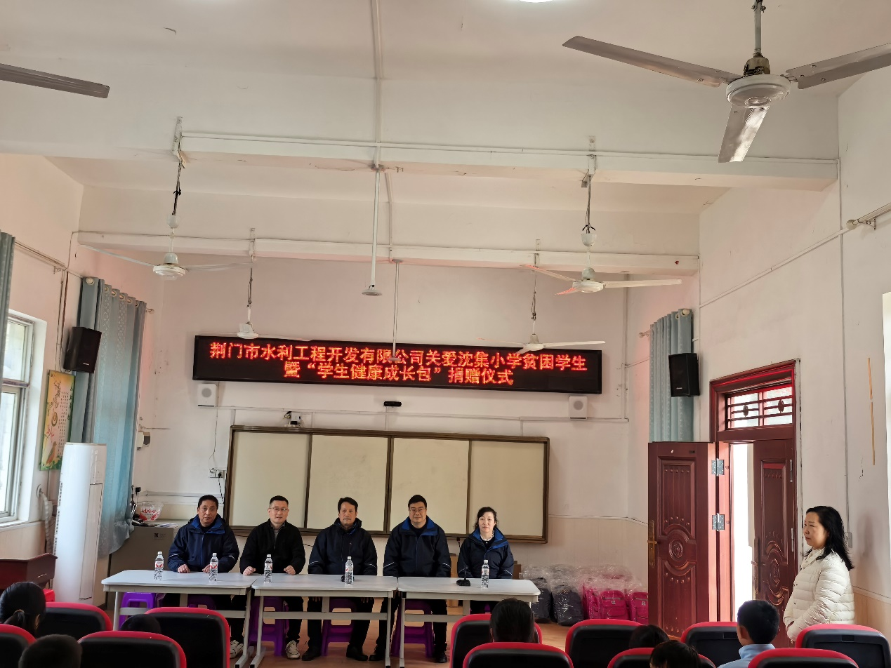 3月11日下午,荆门市水利工程开发有限公司(以下简称“荆门水发公司”)走进沙洋县沈集镇中心小学,召开市关工委组织的“关爱青少年健康成长包”专项捐赠活动。