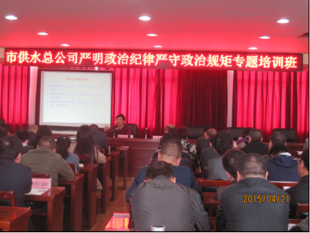 4月21日下午,公司八个支部分别召开支部党员大会,围绕《严明政治纪律严守政治规矩剖析不足》、《如何当好严明政治纪律严守政治规矩模范》踊跃发言、热烈讨论,查找了差距、明确了方向,统一了思想,力争以纪律的严格遵循、作风的实际转变,进一步提高供水服务水平。