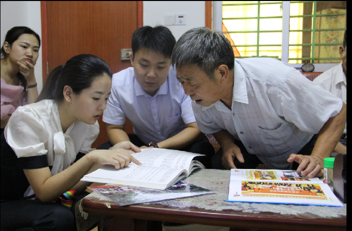 随后,志愿者们来到位于330水泥厂的刘维龙老人的家中,刘维龙与战友梁国明正在观看援越抗美的资料,刘维龙向大家讲述了1968年和部队奔赴越南前线时的情况、在那个战火纷飞的年代战士们跨出国门,如何克服困难奋勇抗敌的英勇事迹,并表示,“当兵就是上战场,就作了流血牺牲的准备。五十年前援越抗美,我们奔赴越南战场,圆满完成任务。现在你们还记得我们,不仅来看我们,还给我们带来慰问品,感谢你们!”