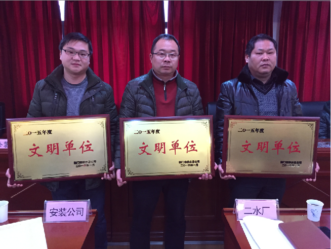 陈总经理还对2016年重点工作进行了部署: 加快推进降差工作;加快推进供水安全保障体系建设;加快推进自备水源整合;加快推进企业信息化建设;加快推进辅业实体“脱困”;持续探索薪酬制度改革;理顺中心城区供水设施建设投资体制;进一步加强党建工作等,