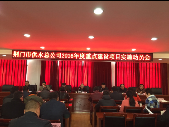 党委书记、总经理陈永根作会议动员,陈总分析了当前开展形势,指出2016年公司面临重大开展机遇和挑战。随着中央城市工作会议以及市委七届八次全体会议的召开,城市建设迎来历史性开展机遇,荆门江汉平原中心城市的定位,十三五期间荆门城市建设资金达2200亿元,三年滚动资金就达800亿,2016年公司政府投资项目资金达1亿,要抢抓机遇 、迎难而上,攻坚克难、锻炼队伍、优化结构,开辟新的经济增长点;要强化措施,创建四水厂、中心城区供水设施、象山大道改造、三条高速出入口改造及中心城区消防栓建设、掇刀区供水管网建设、东宝区供水管网建设、漳河新区供水管网建设、响岭加压站和二水厂备用电源等七个项目建设专班,分别由一名副总经理担任责任领导,对应一个责任处室、单位,明确职责、层层抓好落实;要抓好项现在期工作,确保项目落地生根,确保按时保质完成;相互沟通协调协作、形成合力,确保本职工作、项目建设两不误两促进;要强化执纪问责,由公司纪委负责,加强对重点工作、项目落实情况进行督办问责、有助于落实,按照任务分工、时间节点督办,强化担当、强化执行力,加快进程,对落实不力的、迟滞延误的要根据《中国共产党纪律处分条例》相关条款进行处理;要创新召开工作,主动与主管部门对接、协调,提前谋划、持续跑事、干事、时不我待、只争朝夕;要增强项目廉洁自律意识,按规矩办事、不踩红线,确保项目立得起、干部挺得住,能干事、干成事、不出事。会议动员全体干部职工鼓足干劲、通力协作,迅速掀起项目建设、会战热潮。