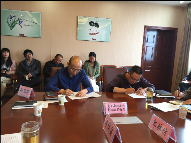 428日,公司召开党委中心组扩大会议,对“两学一做”活动做出安排部署,并进行系统理论学习。会前,党委书记、总经理陈永根、党委副书记、纪委书记、工会主席徐黎明分别与各支部书记、各单位(处室)负责人签订2016年党风廉政建设责任状。