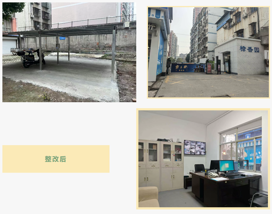 鑫泉物业公司对症施策,改造物业办公场所,设置便民窗口,实现公共区域监控全覆盖,新增太阳能路灯,更换楼道感应灯,新建带充电设施的非机动车棚,修剪绿植,清理杂物,小区环境焕然一新,居住体验大幅提升。
