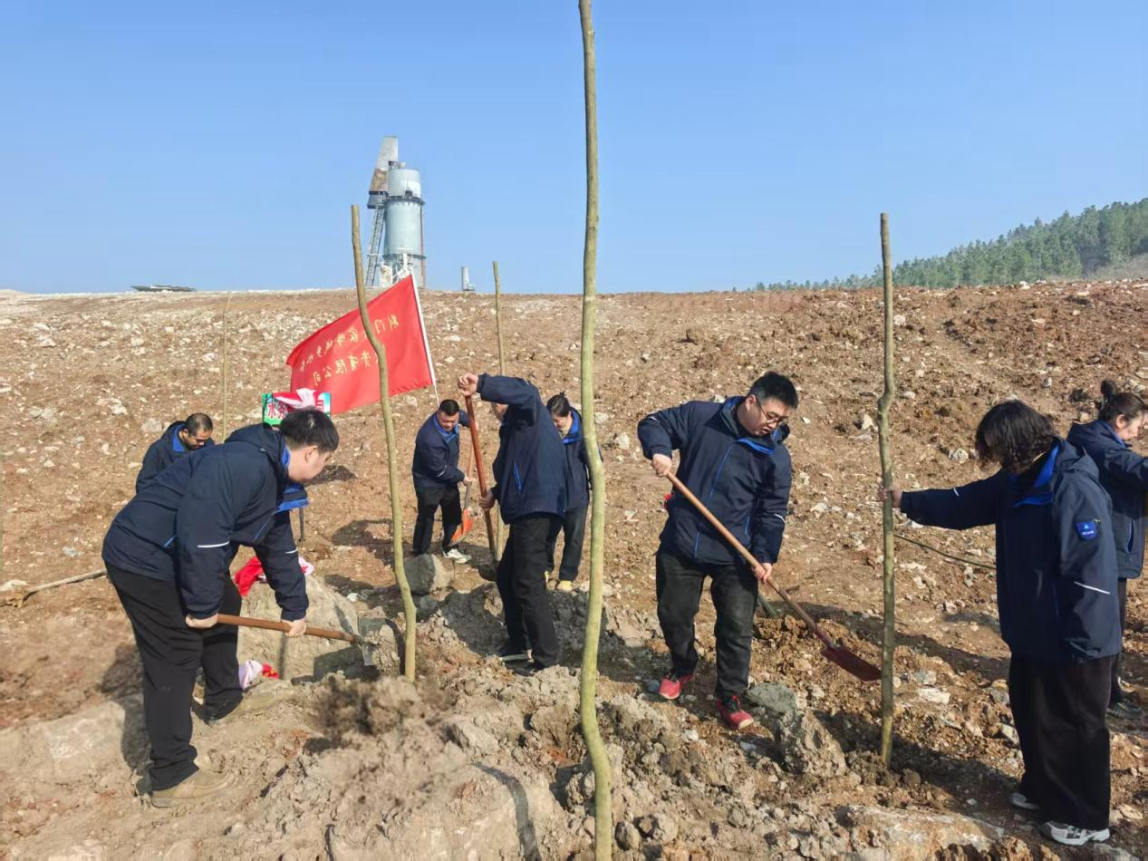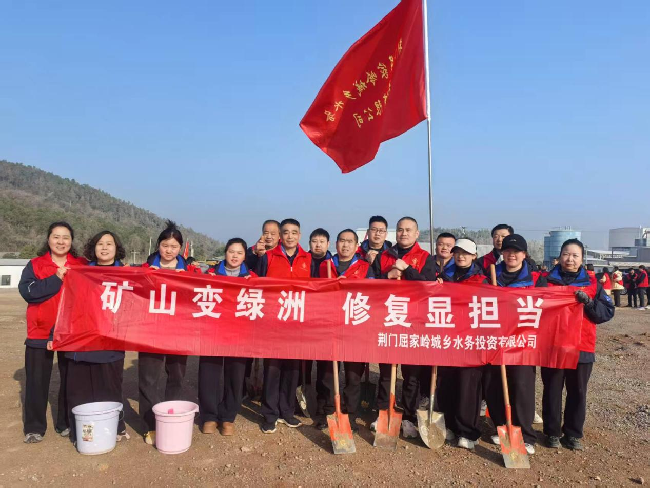 屈家岭水投公司14名干部职工们分工协作,挥锹铲土、扶苗填坑、提水浇灌,每一个环节都一丝不苟,干劲十足,现场一片热火朝天的景象。经过大家的共同努力,一株株新栽种的树苗在春风中昂然挺立,为昔日矿山披上了崭新的绿装,为初春的屈家岭增添了勃勃生机。